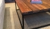 A custom iron coffee table base with a rustic red pine top. Finished with our hand rubbed antique stain finish. Made to order in our Severn Bridge wood shop.
