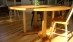 A round dining table with our own X-base design. This table featured tapered posts that connect to feet with a pleasing angled cut at the ends. The solid cherry top with a chamfered bottom edge make this a simple yet elegant dining table. As an option we can add a built in lazy Susan for ease of use. The table pictured is 5' round. Custom sizes available.