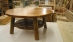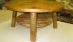 A custom version of our round log coffee table. Made as typical with our hand-hewn log legs but with the addition of a special lower shelf made up of joined and laminated pine logs. Stained with our antique stain and finished with our hand-rubbed lacquer finish.