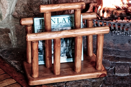 Just like the original magazine rack but made from small hand-hewn log pieces and stained with our antique stain. It looks great with our log seating pieces.