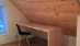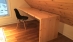 A custom desk made to fit into an almost unusable alcove. The waterfall end of the desk provides a natural white pine support while the top is a simple flat workspace. A grommet for wires completes the simple yet usable desk.