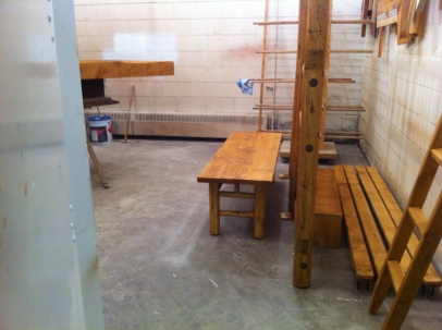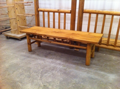 A custom version of our popular log bench, this one has straight legs with an interesting apron to provide structural support.