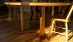 A round dining table with our own X-base design. This table featured tapered posts that connect to feet with a pleasing angled cut at the ends. The solid cherry top with a chamfered bottom edge make this a simple yet elegant dining table. As an option we can add a built in lazy Susan for ease of use. The table pictured is 5' round. Custom sizes available.