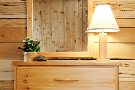 As the name hints it's just the right size to sit on a chest of drawers. It's a little shorter than the table lamp and has an on/off socket and a smaller shade.