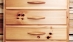 Options: custom widths, heights and depths, custom finishes and stains including a natural linseed oil finish. Blumotion slow close drawer slides