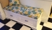 An entry bench with two large drawers, slow-close drawer slides and a solid white lacquer finish. The custom cushion for the seat adds a splash of colour and comfort.