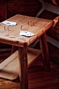 If someone in your family enjoys this game they will love this table. Made with hand-planed log legs, a log trimmed top and our antique stain to highlight the grain. Made at the height of a coffee table, it's big enough for  playing cards and scoring pegs. It can do double duty as a little drink or coffee table when the game is over. Add a drawer to keep the cards and pegs in one tidy spot.