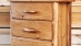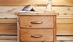 The large log three drawer night table is a great way to keep everything tidy and out of the way and three drawers always look pleasing to the eye. This larger (wider, taller and deeper) version works well beside a larger or taller bed. It features our hand-hewn log legs, and our grain enhancing antique stain. Just like our chests our night tables are made to last and look beautiful. All are scaled to please the eye and built give you generations of use. Fitted with our own wooden runners, our trademark handmade wooden handles, all are finished with our satiny smooth hand-rubbed lacquer finish. Custom sizes are still available too.