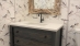 A handmade powder room vanity made of ash and stained with a dark espresso stain. The limited space in this bathroom became functional with the addition of our carefully designed and built vanity. With slow-close drawer slides and a custom drawer box made to go around the plumbing, this vanity serves it's intended purpose quite well.