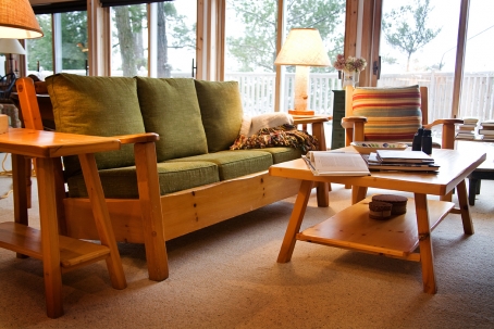 Options: deeper seats, custom widths, down filled back cushions, thousands of fabrics to choose from in our showrooms and many custom stains and finishes available including a natural linseed oil finish.