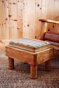 These simple yet comfortable stools are what every cottage living room needs. They make a big chair even more comfortable and can do double duty as extra seating at a gathering. This log construction version has the addition of hand-planed log feet and our antique stain finish. Our family likes to use them as a seat for roasting marshmallows by the fire. They are truly the best extra seat in the room.